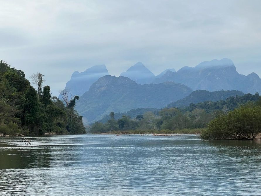 Nach fünf recht unbequemen Paddelstunden – nicht wegen der starken Strömung, sondern wegen der Enge der Sitze, die uns zwang, ständig unsere Position zu wechseln, obwohl wir unsere Isomatten erst halbiert, dann geviertelt und schließlich achtelt hatten und diese sich ohne Rücksicht auf unsere Hinterteile flach ausbreiteten –, erreichten wir Mouang Gnoi am alten Ho-Chi-Minh-Pfad.